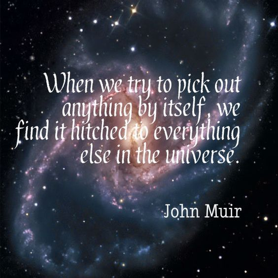 John Muir a Scottish-born American was a naturalist, author, environmental philosopher, botanist, zoologist, glaciologist, and early advocate for the preservation of wilderness in the United States. Everything is interconnected.